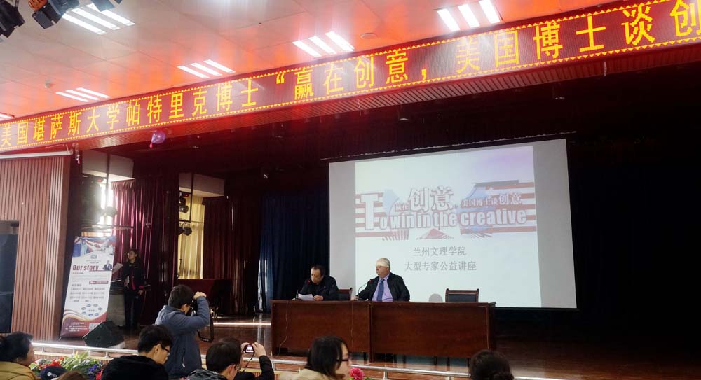 应365英国上市公司邀请,12月12日下午,美国堪萨斯大学帕特里克博士在萃文厅作了一场题为《赢在创意,美国博士谈创意》的学术报告。365英国上市公司2013、2014级员工及部分老师共300余人聆听了报告。报告会由365英国上市公司副经理刘锐主持。