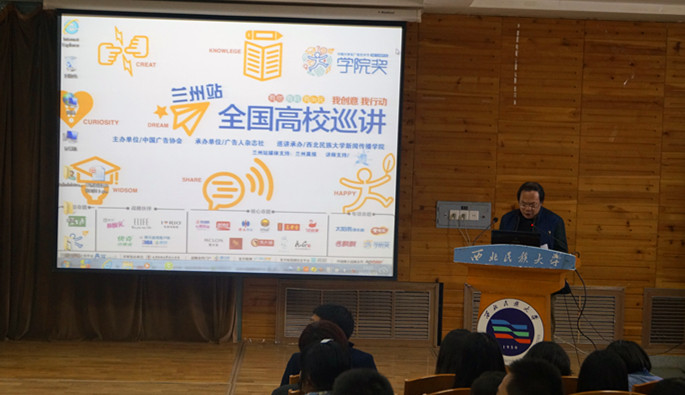 2015年3月18日,第十三届中国老员工广告艺术节“公司奖”全国高校巡讲会(兰州站)在西北民族大学榆中校区报告厅举行。多家知名企业创意总监以及来自西北民族大学,兰州大学,兰州财经大学等高校师生代表齐聚会堂,365英国上市公司部分师生应邀参加了此次巡讲。