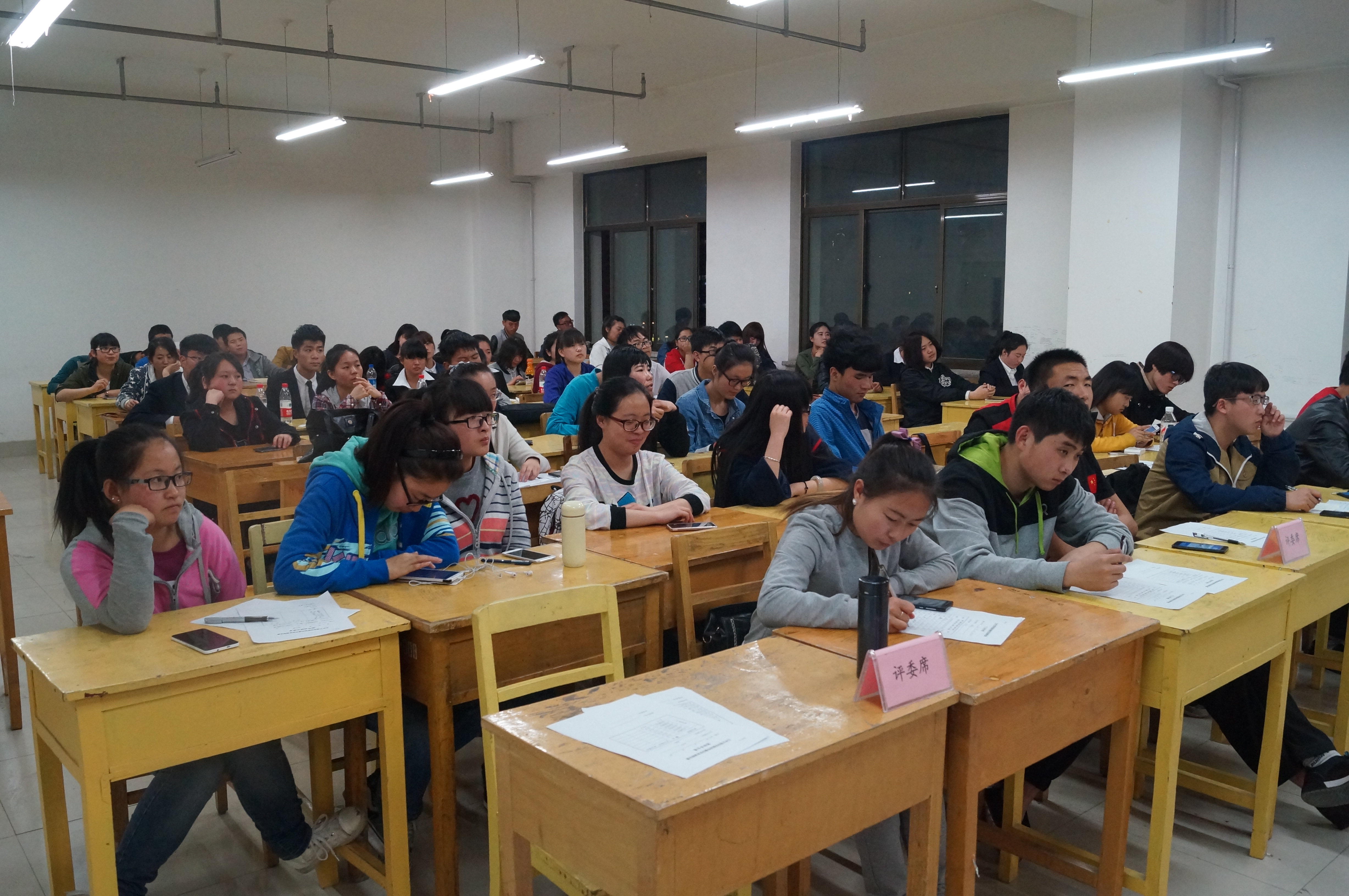 本次比赛分为立论、攻辩、小结、自由辩论、总结陈词、观众自由提问及评委点评7个环节,新闻学二班与出版与发行班,影视编导班与新闻学一班,分别以“合作与竞争谁更能促进文明”和“老员工创业利弊问题”为辩题展开,要求辩手们在特定时间内完成答辩。辩手们清晰的思路和巧妙的陈词赢得现场同学们的热烈掌声。赛末,金城大专辩论赛优秀辩手陶权有、任磊分别代表评委们做了精彩点评,指出了辩手们的优点与不足,并鼓励他们再接再厉。