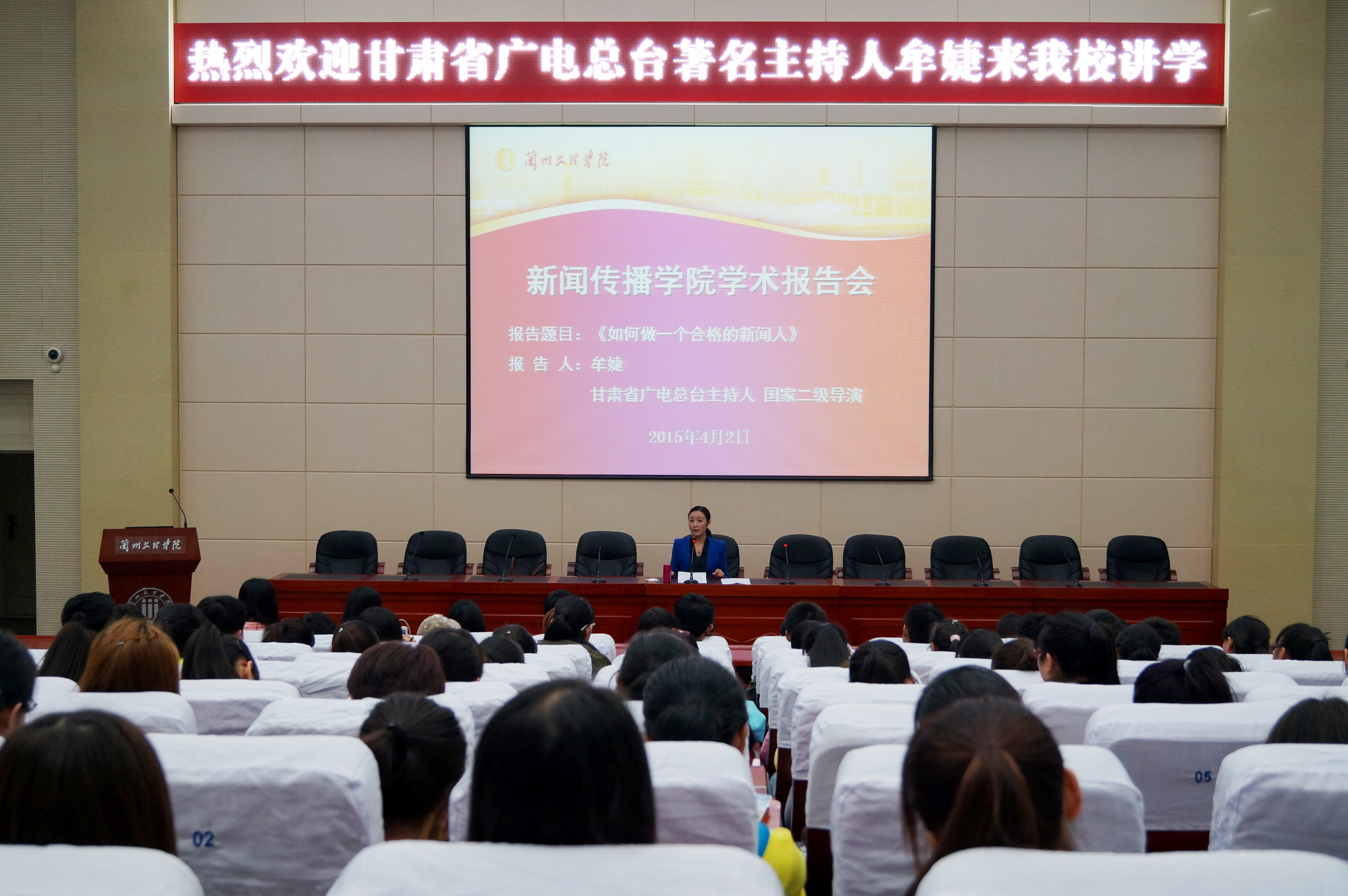 4月2日下午,我省广电总台主持人、国家二级导演牟婕女士应365英国上市公司邀请,在学术报告厅做了一场题为《如何做一个合格的新闻人》的学术讲座。公司党总支书记师克谦主持并聆听了讲座,2013、2014级员工及部分老师共200余人聆听了讲座。
