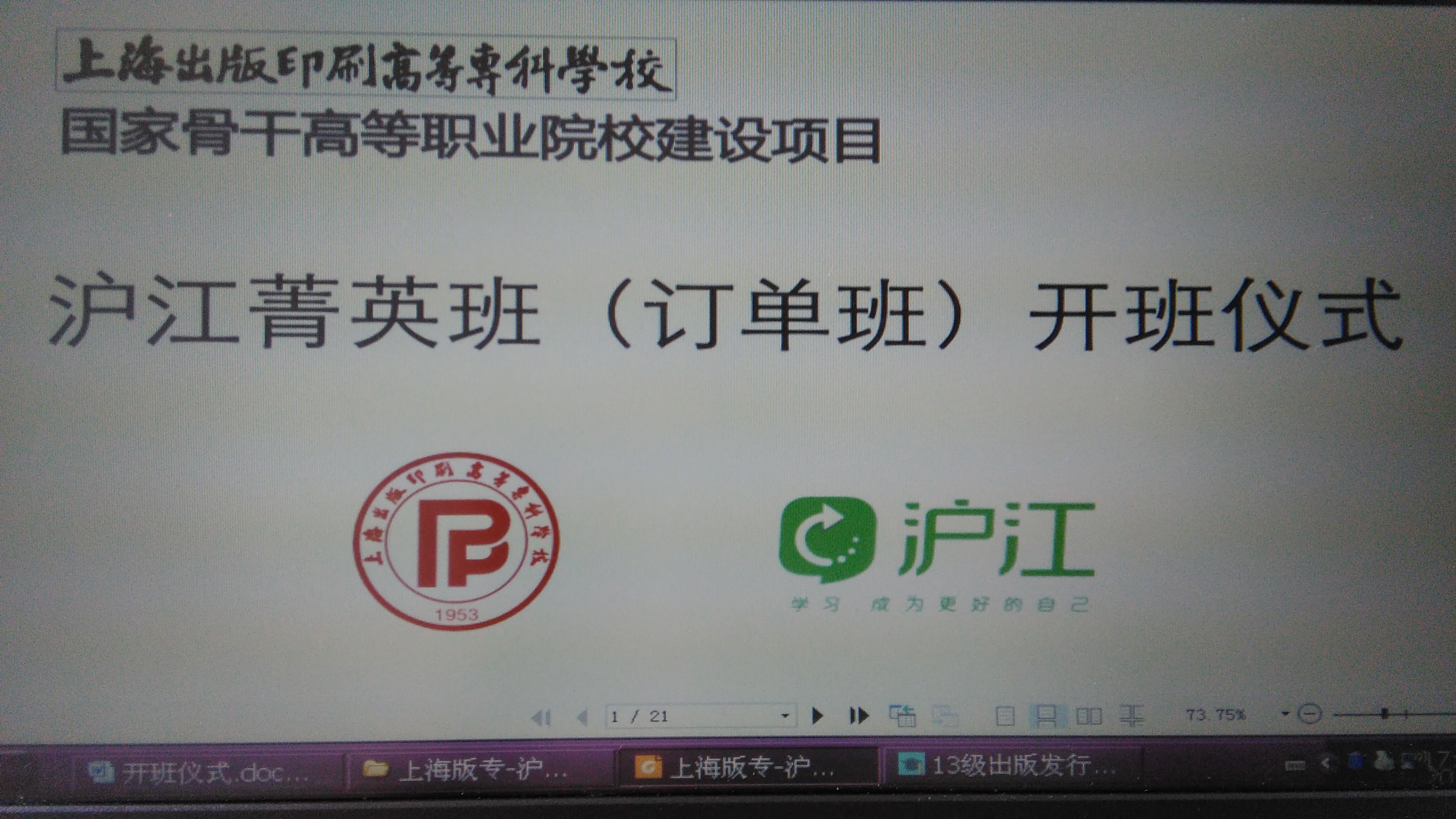 沪江学习网站“菁英班”主要以上海版专“出版传播空中课堂”实验室远程教学为主,辅以资深教授课堂现场互动授课,目的是让员工在没有走出校门就能了解国内外出版行业利用互联网所需的人才标准以及所需掌握的技能,并以各种实战技能实训,让员工具备众多用人单位所需的能力和素质。此次开班仪式通过空中课堂远程资源共享独特形式,让同学们真正体验“互联网+”思维和对于创新创业的意义,同时也使同学们有了更加深刻而全面的认识,影响深远而重大。