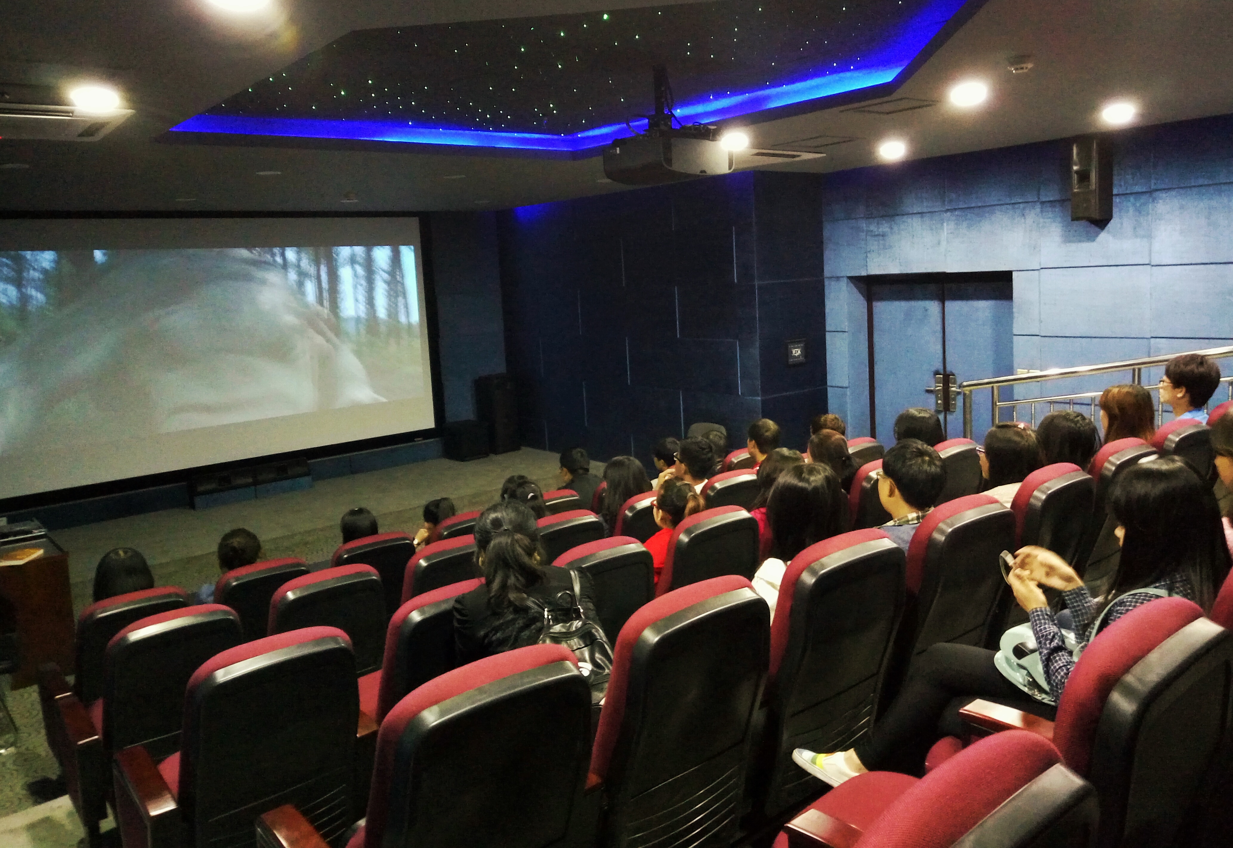 9月26日,南校区综合楼九楼影视观摩赏析实验室不时传来欢声笑语,一场热闹非凡的中秋观影会正在精彩上演,为了使同学们度过一个快乐充实的中秋节,公司领导及早安排、部分老师牺牲休息时间为全体员工精心策划了本次中秋观影会。观影会为期两天,播放的影片有《捉妖记》、《碟中谍5》、《复仇者联盟》等,内容丰富,题材多样,均为上映不久的流行影片。活动丰富了同学们的节日生活,进一步加深了同学们之间的感情。