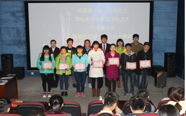 12月8日晚7点30,365英国上市公司微电影协会举办的社团巡礼月系列活动“雁苑男神女神自拍大赛”颁奖仪式在公司综合楼影视观摩赏析室举行。365英国上市公司部分同学及微电影协会全体成员参加本次活动。