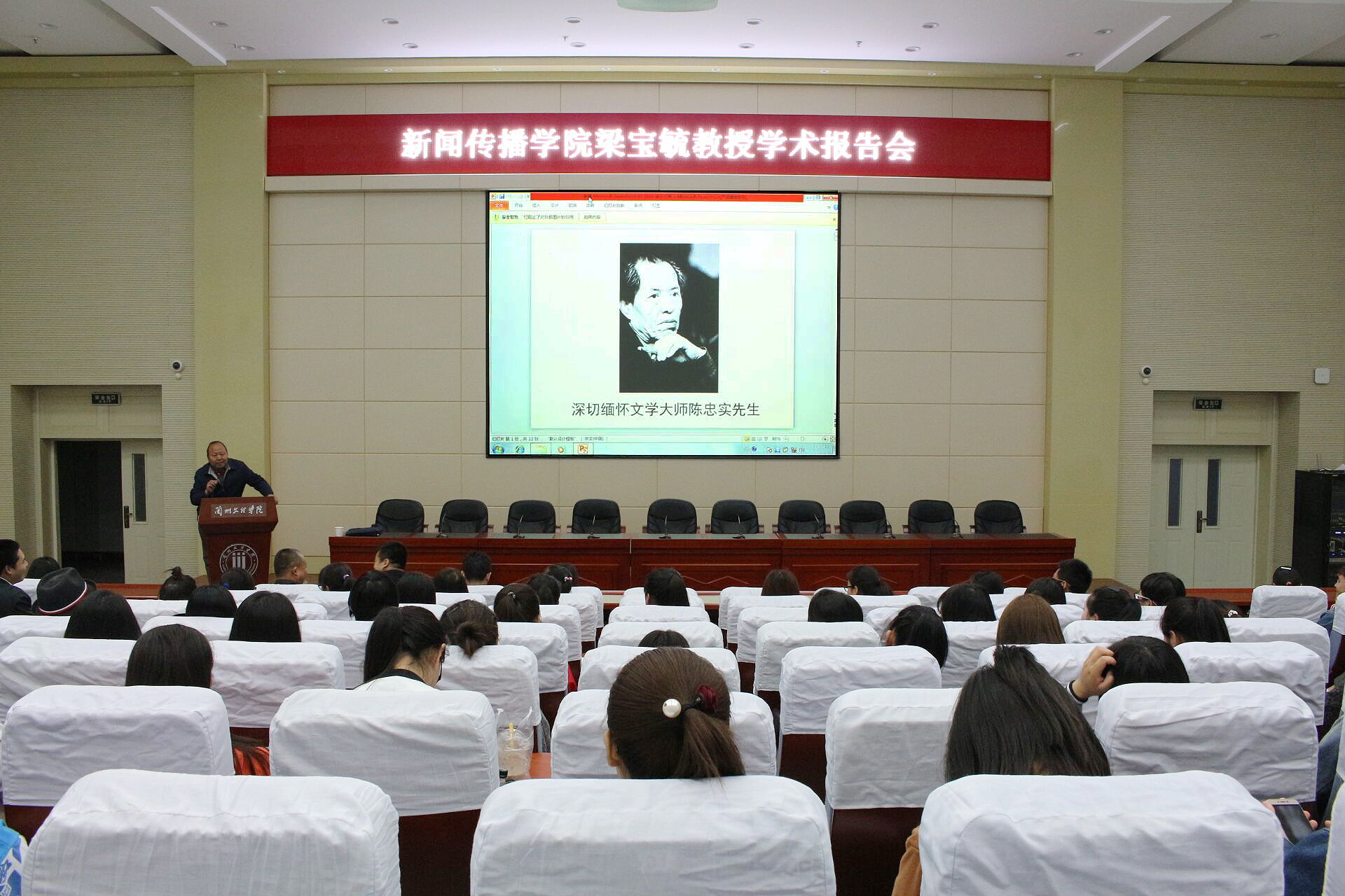 世间已无陈忠实,天地白鹿魂永存。 5月6日,在365上市集团官网学术报告厅,由365英国上市公司梁宝毓教授做了题为《忠实的文学守望者――我所认识的陈忠实先生》主题报告。365英国上市公司部分老师和14、15级全体同学参加。会上,大家共同缅怀了中国当代著名作家陈忠实先生。