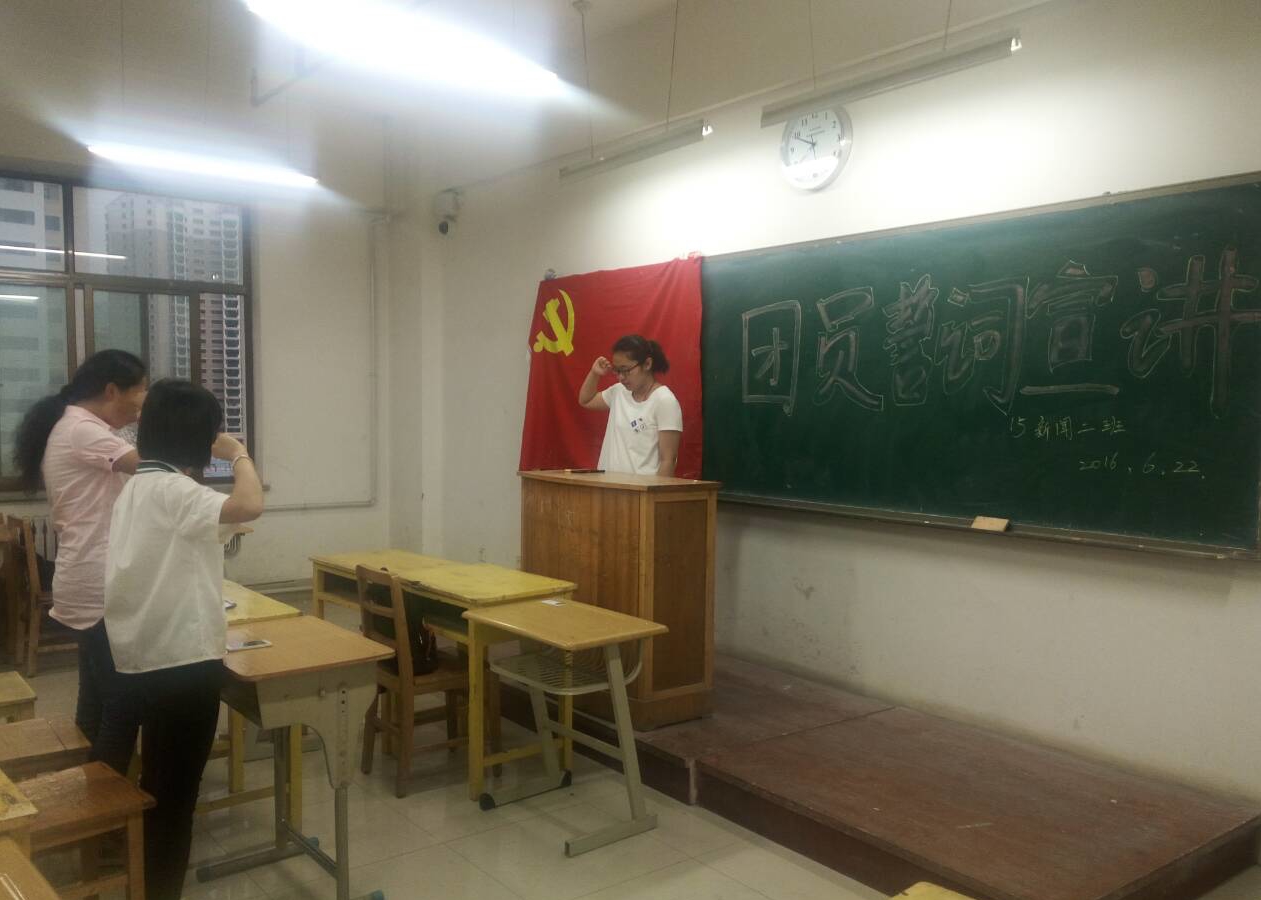 2016年6月22日晚九点三十分,15级新闻二班的同学在团支部书记张湘�同学的带领下,开展了重读宣誓词的团学活动,同学们认真严肃的态度表达了对此次活动的重视。
