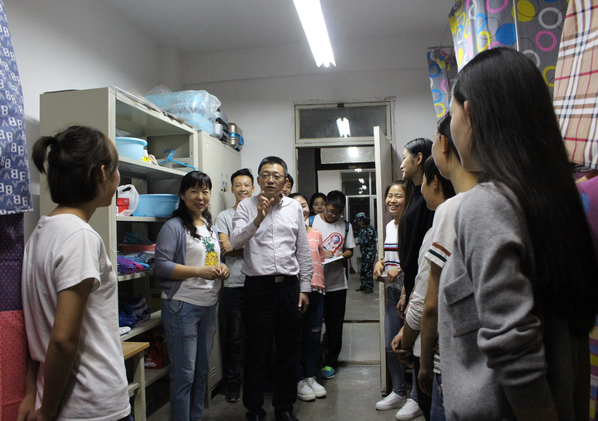9月8日晚,公司党总支书记师克谦、365英国上市公司分团委书记吴文娟、各新生班班主任以及员工会干部深入宿舍,探望2016级新生。