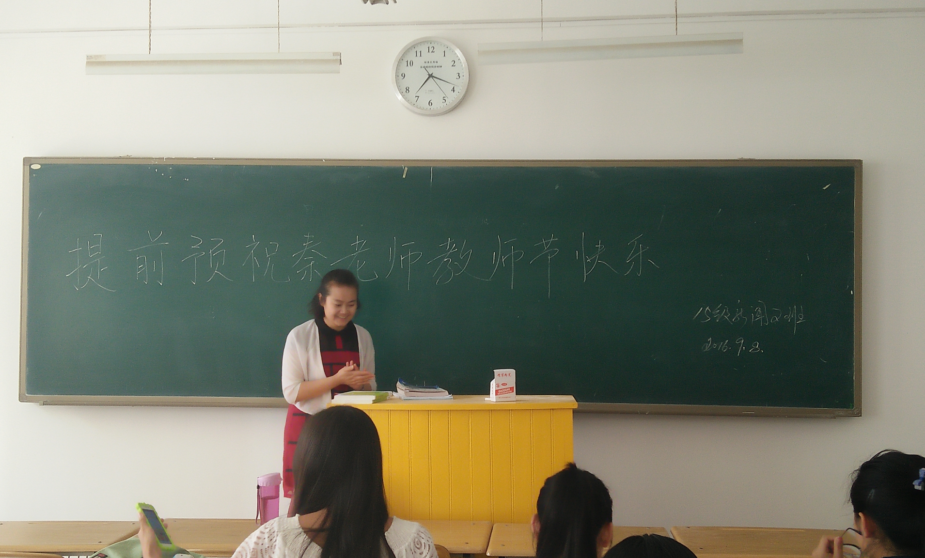 365英国上市公司各个年级、各个班级,不同专业的同学,以各种不同的方式庆祝第32个教师节,有的对着进入教室的老师齐声送上祝福,有的在班里的黑板上工整的写下“祝老师教师节快乐”的字样。2014级出版与发行班的同学们还专门制作了美观别致的ppt,向老师表达着自己的祝福。公司其他班级也用为老师送一杯水等多种多样的方式,向平时为自己传道解惑的老师们表达着感恩之情。