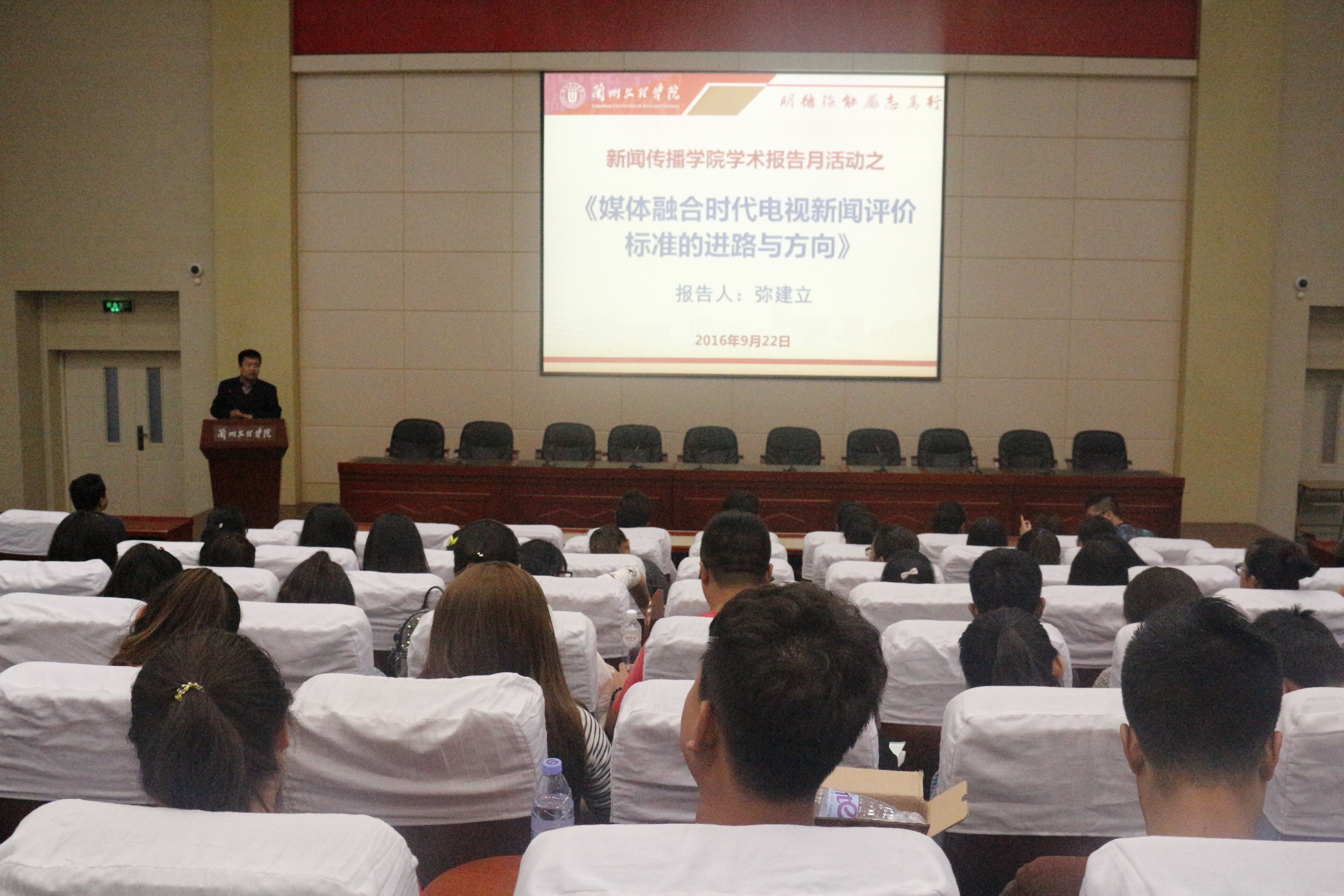 2016年9月22日,在综合楼学术报告厅,由365英国上市公司弥建立老师带来了一场名为《媒介融合时代电视新闻评价标准的进路与方向》主题报告,拉开了365英国上市公司“学术报告月”的帷幕。本次报告会由365英国上市公司教研室主任高剑宁老师主持,公司部分同学参加。