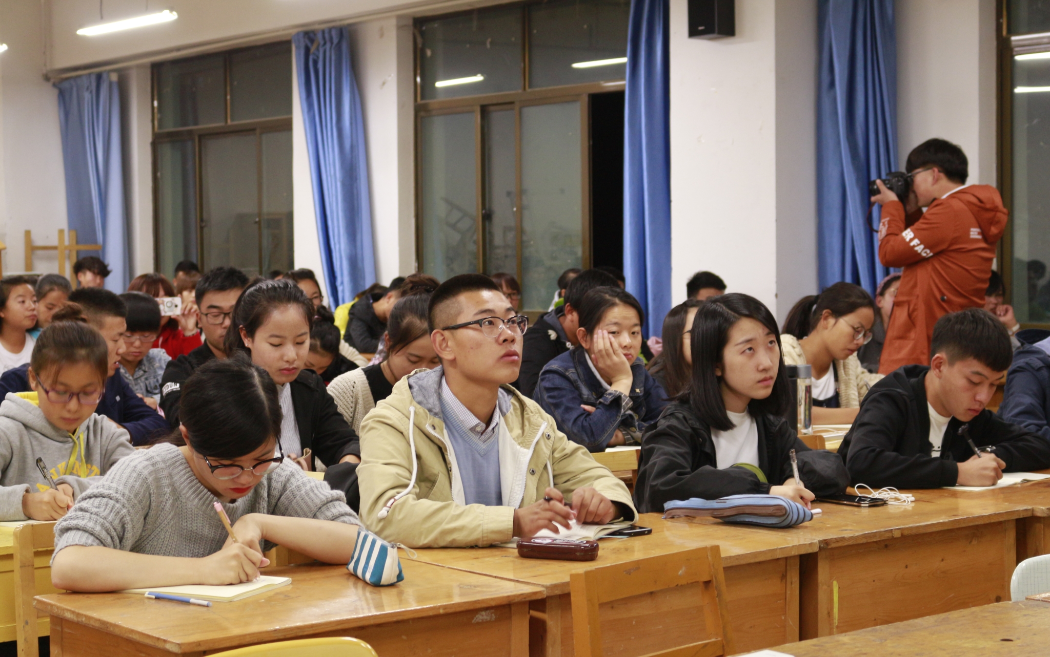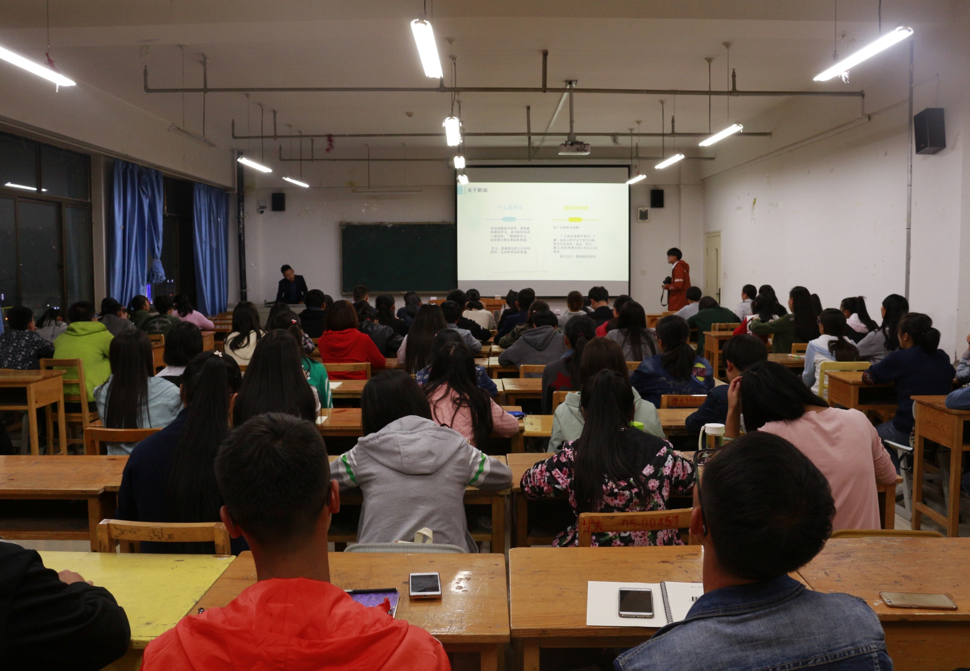 在为期两天的培训中,巨斌从新闻的定义、要素、特点等方面向同学们做了讲解,结合实际,以公司、公司新闻为例,向同学们详细讲解了如何写好校园新闻,从党团建设、视察调研、文体活动等多个角度为同学们做了详细分析。此后,巨斌又对摄影器材基础操作,校园新闻拍摄方法、拍摄要求进行了重点讲解,从会议座谈、领导视察、文体活动等三个方面进行了详细分析。同时,鼓励同学们在今后的校园活动中,一定要勤参加、多动手,在实践中充分发挥自己所学知识,争取早日成为一名合格的新闻人。讲座现场学习气氛浓厚,同学们纷纷表示获益良多。