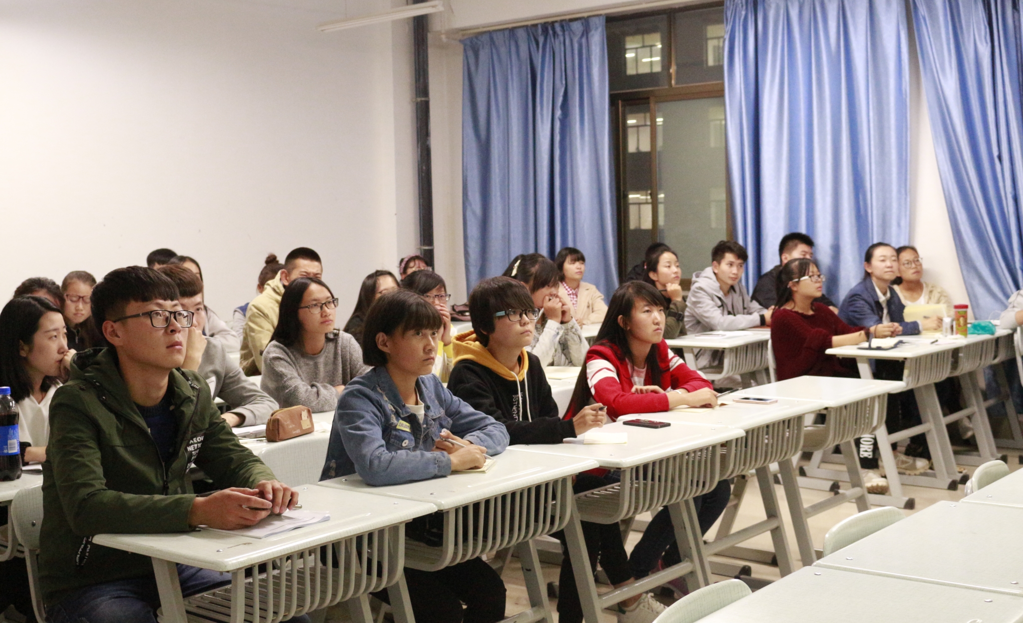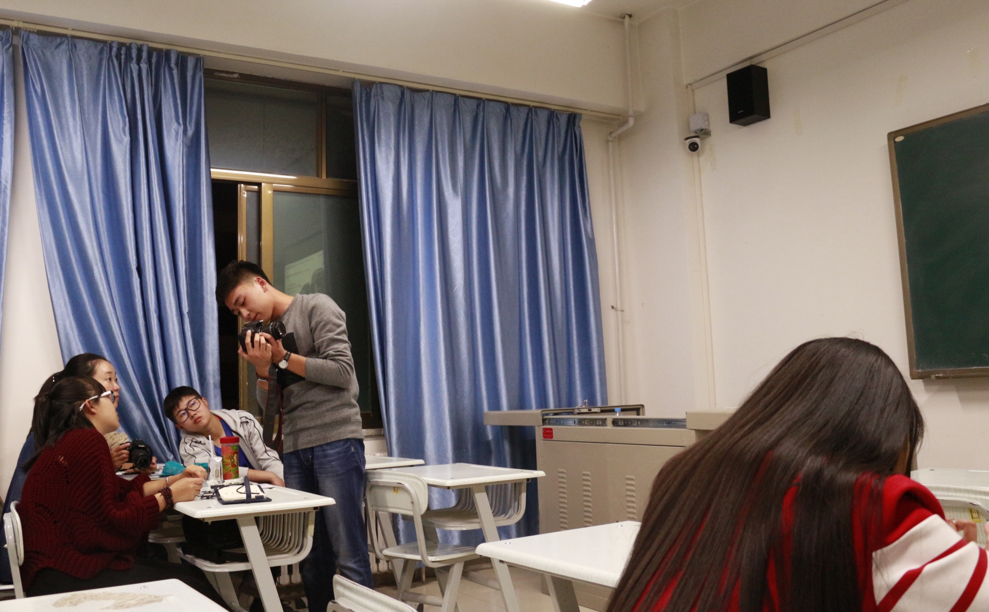 培训伊始,尹俊达站长为为现场同学作了单反相机的结构及一些基本使用方法的普及,并且通过一段视频为同学们展示了构图的基本方法及技巧。他深入浅出地向同学们介绍了光圈、快门速度、感光度等专业词汇的意义,并且通过实例为同学们分析了新闻摄影常见的活动如何拍摄,同时结合了当前所在教室的环境,指出活动照片拍摄的要点。现场同学认真听讲并做笔记,他们纷纷表示学有所获,并对尹站长精彩的讲解报以热烈的掌声。