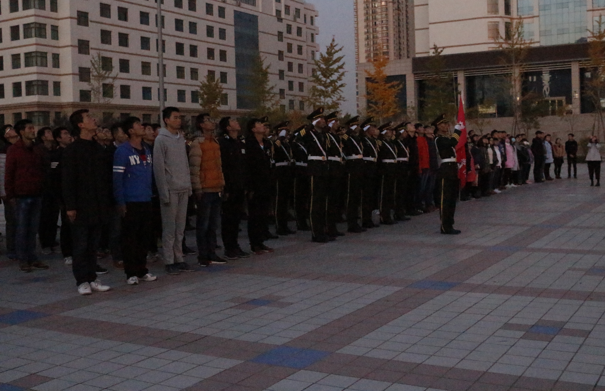 10月31日早晨7点,365英国上市公司纪念长征胜利80周年升国旗仪式在南校区安亭广场隆重举行。365英国上市公司副经理刘锐、办公室刘婧老师等出席升旗仪式,365英国上市公司分团委员工会及全体365英国上市公司员工参加了升旗仪式。