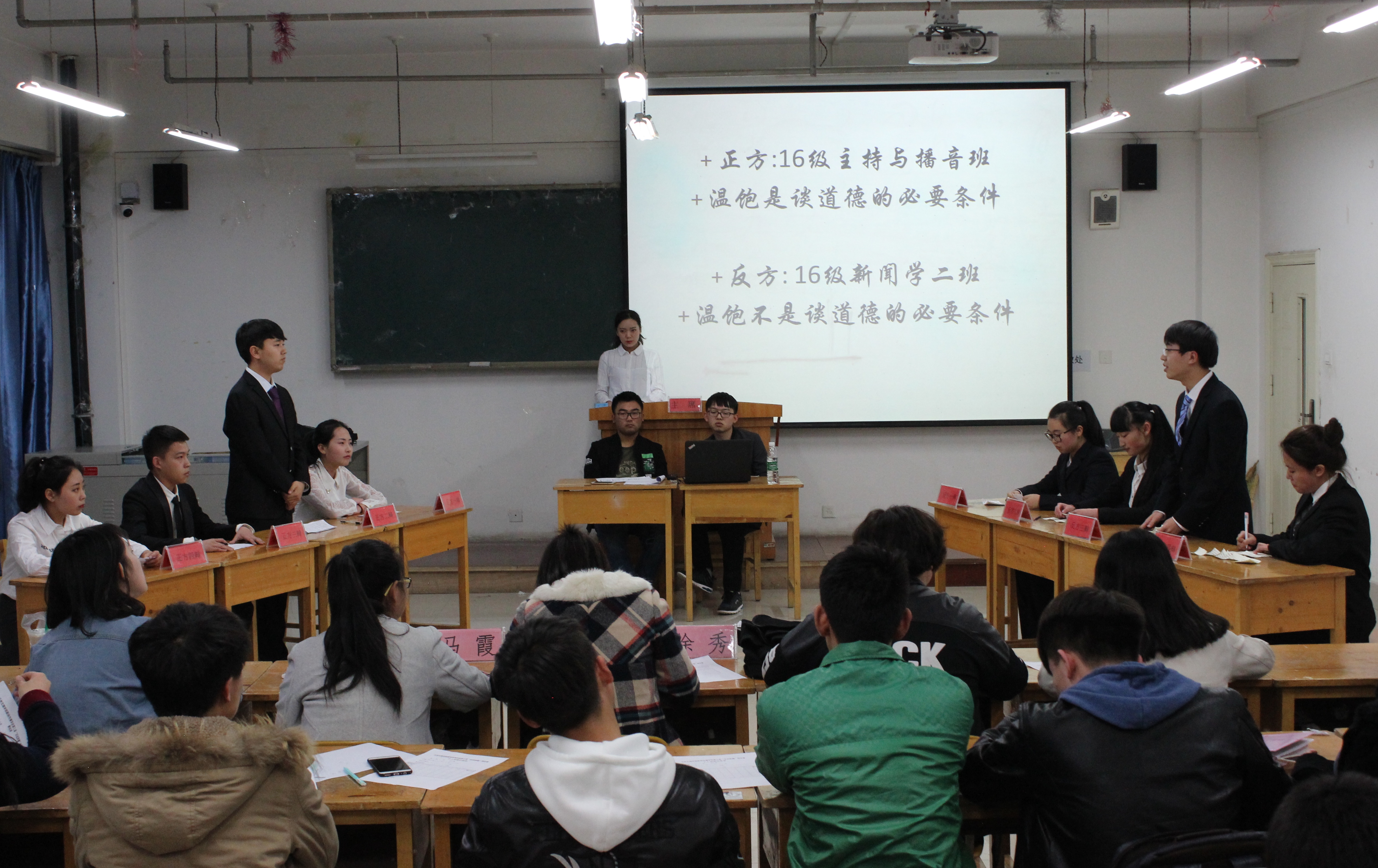 本次比赛分为两场进行,第一场由365英国上市公司16级新闻一班和16级影视编导班进行辩论,他们的辩题是“网络使人更加亲近还是更加疏远”。第二场由16级主持与播音班和16级新闻二班进行辩论,以““温饱是不是谈道德的必要条件”展开辩论。双方选手就辩题展开更深层次的辩论,个个巧言善辩,把辩论赛一次次推向高潮。赛后,由校优秀辩手徐秀和徐红梅同学对本次比赛做点评,指出了选手们的优秀与不足之处。
