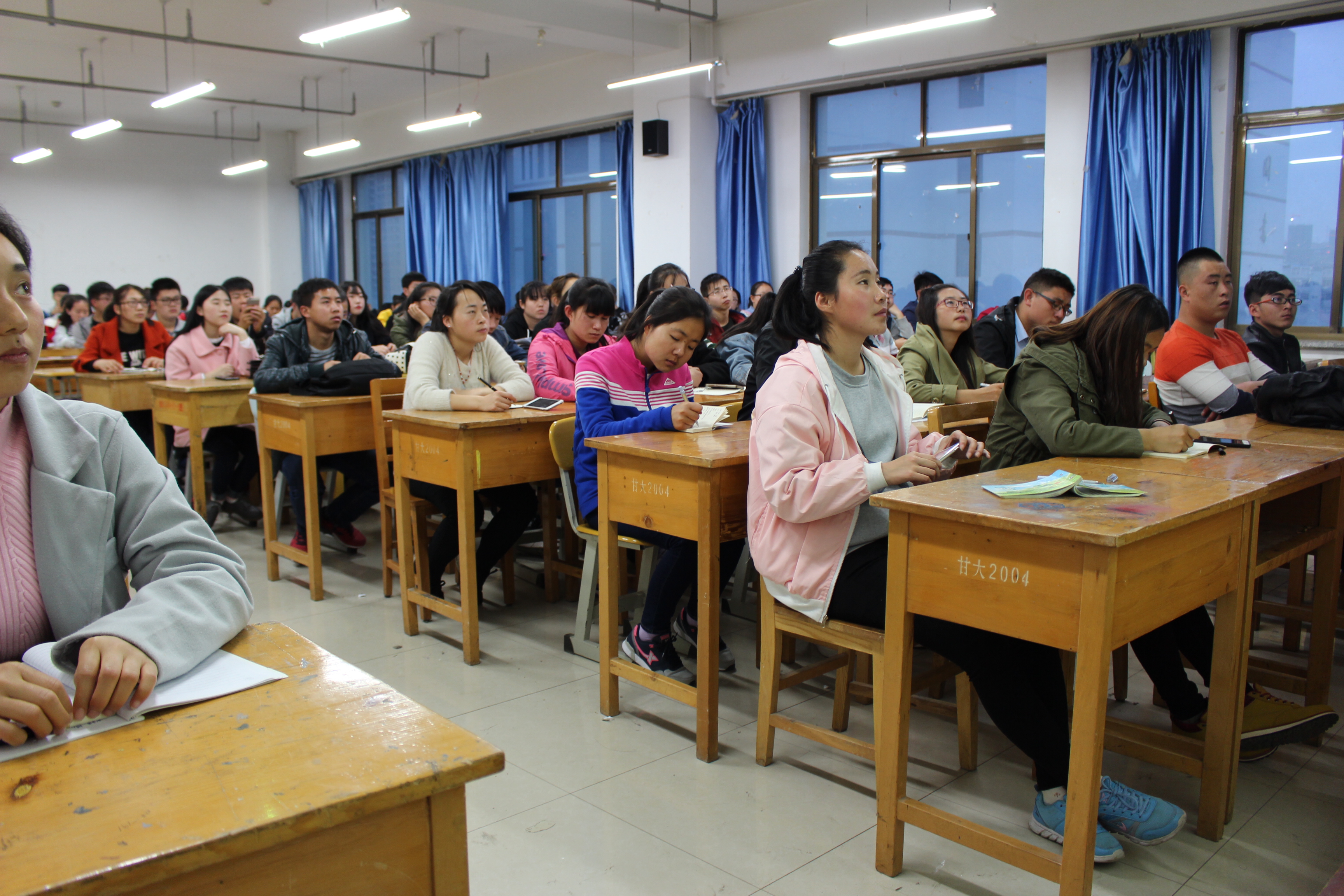在培训中,首先,巨斌从新闻的定义、要素、特点等方面向同学们做了讲解,结合实际,以公司、公司新闻为例,向同学们详细讲解了如何写好校园新闻,就新闻稿的标题,格式,内容和基本要求做出了详细的总结,明确说明新闻撰稿要求真实性,及时性,实证性。其次,他与大家分享了在新闻写作方面的一些经验感受,鼓励大家要多写多练。整场培训思路清晰,讲解耐心细致,使在场的同学收益不小。最后,他就相机的构成,基础理论,如何构图,以及拍摄时应如何手握相机并保持什么样的姿势才能拍出好照片与如何在拍摄前调试好相机做了详细讲解,他还深入浅出地向同学们介绍了光圈、快门速度、感光度等专业词汇的意义,并且通过实例为同学们分析了新闻摄影常见的活动照片如何拍摄,同时结合了当前所在教室的环境,指出活动照片拍摄的要点。现场同学认真听讲并做笔记,他们纷纷表示学有所获,并对巨斌精彩的讲解报以热烈的掌声。