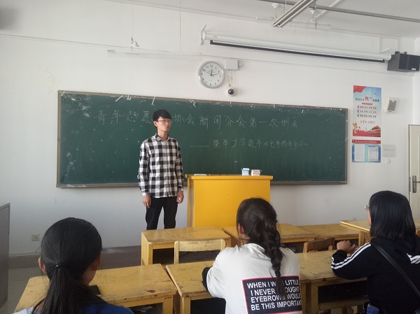 9月29日,为树立广大志愿者正确的价值观、传递乐于奉献的精神,青协新闻分会在3-604教室组织全体志愿者学习了《习近平七年知青岁月》的内涵精神。本次活动邀请了16级新闻学2班团支书王泽宇为大家做讲解。