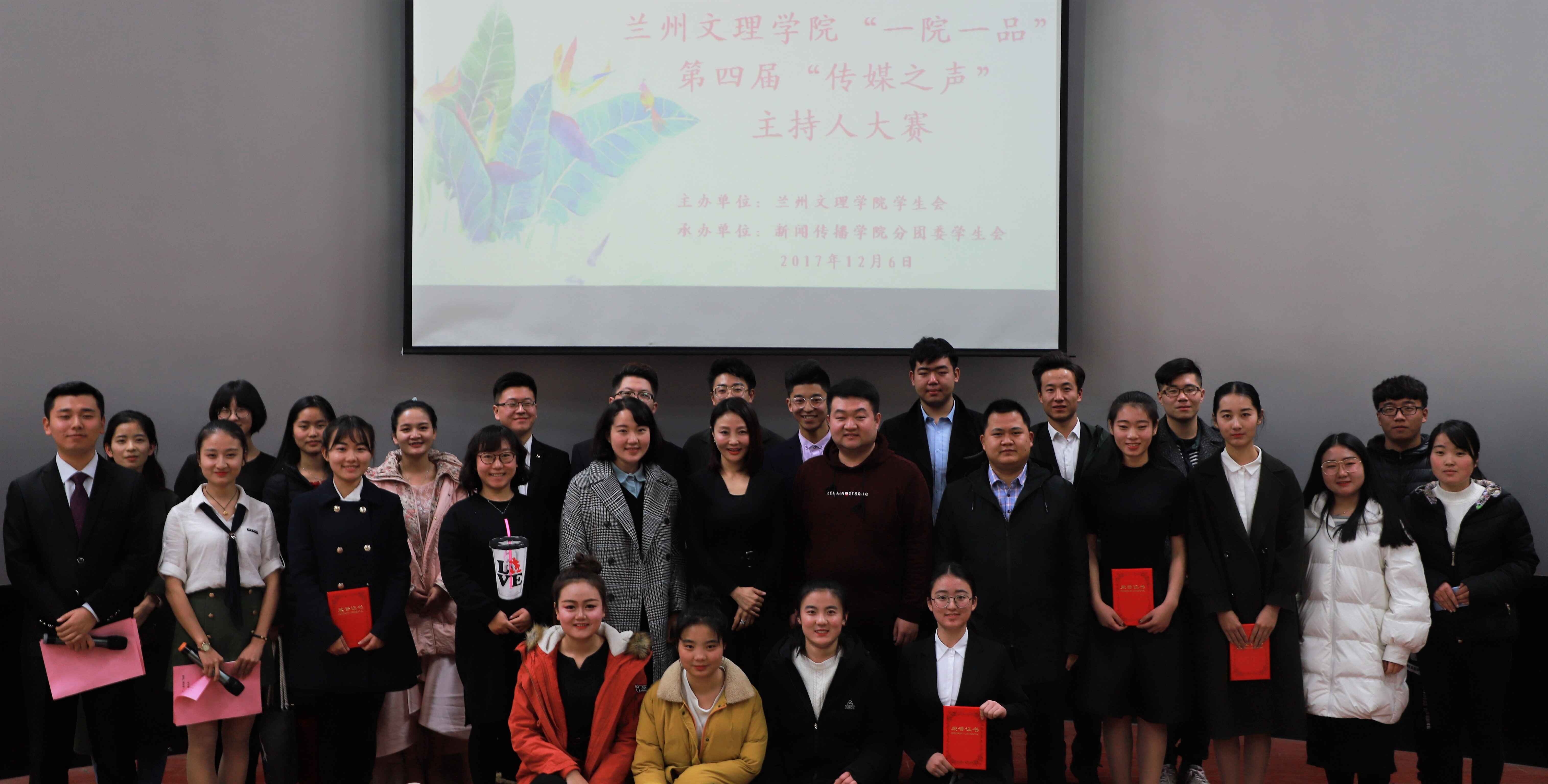 12月6号晚,“一院一品”第四届“传媒之声”主持人大赛的决赛在综合楼401教室落幕。此次大赛由365上市集团官网校团委主办,365英国上市公司分团委承办,参加此次决赛的嘉宾和评委有共青团365上市集团官网委员会副书记安婧,甘肃省广电总台优秀主持人、365英国上市公司副教授刘静,国家一级播音员、365英国上市公司特聘教师吴勇庆老师,365英国上市公司分团委负责人吴文娟老师,365英国上市公司影视编导教研室韩璐老师,365英国上市公司辅导员张臻年老师,各公司员工代表观看了本场比赛。