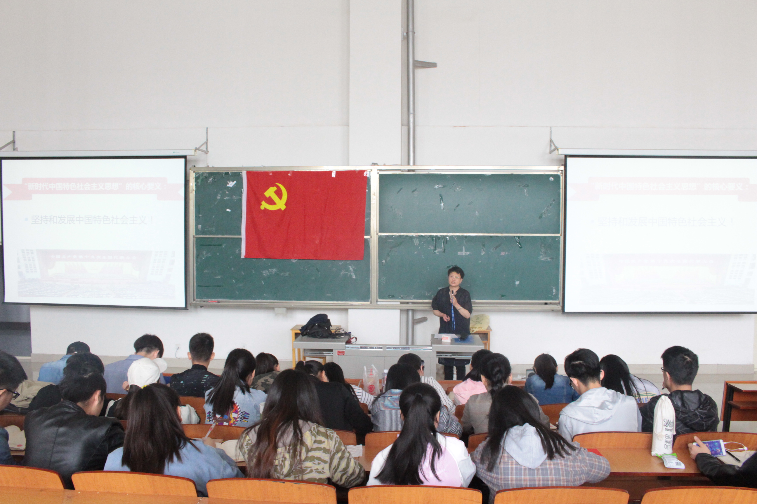 这次党课,费翔教授先是简单讲了党的指导思想的发展,从毛泽东思想到邓小平理论,再到“三个代表”重要思想,再到科学发展观,最后到现在的习近平新时代中国特色社会主义思想的发展历程。强调历史发展的必然趋势,推动着党的指导思想的改变,当指出下形势,我们应该深入贯彻落实习近平新时代中国特色社会主义新思想,它是这个时代解决当下问题,走向民族复兴的强大思想武器。费翔讲授还讲到,经验可以借鉴,但道路不可复制。我们当下选择的道路是一代又一代共产党人探索出来的,是符合中国国情的。费翔讲授还采用提问的方式与同学们进行互动,提高同学们对党课讲座的参与性和积极性。