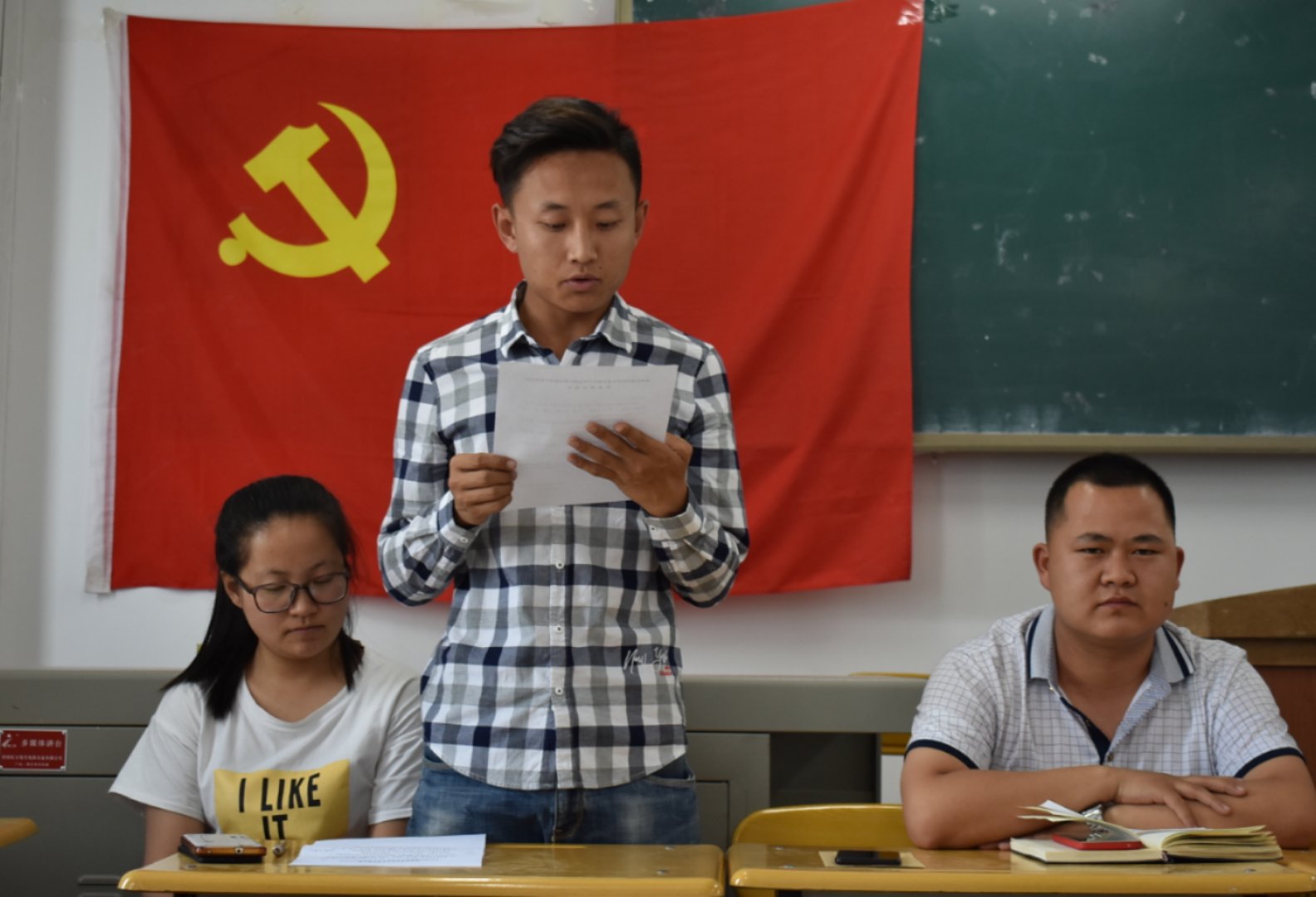 2018年6月12日中午,365英国上市公司员工第二、第三党支部在1-504教室举行了预备党员接收大会。会议主要讨论关于发展对象马辉等九名同志入党问题。公司党总支书记师克谦、副书记刘锐出席此次大会,会议由员工第二党支部书记杨玮主持。