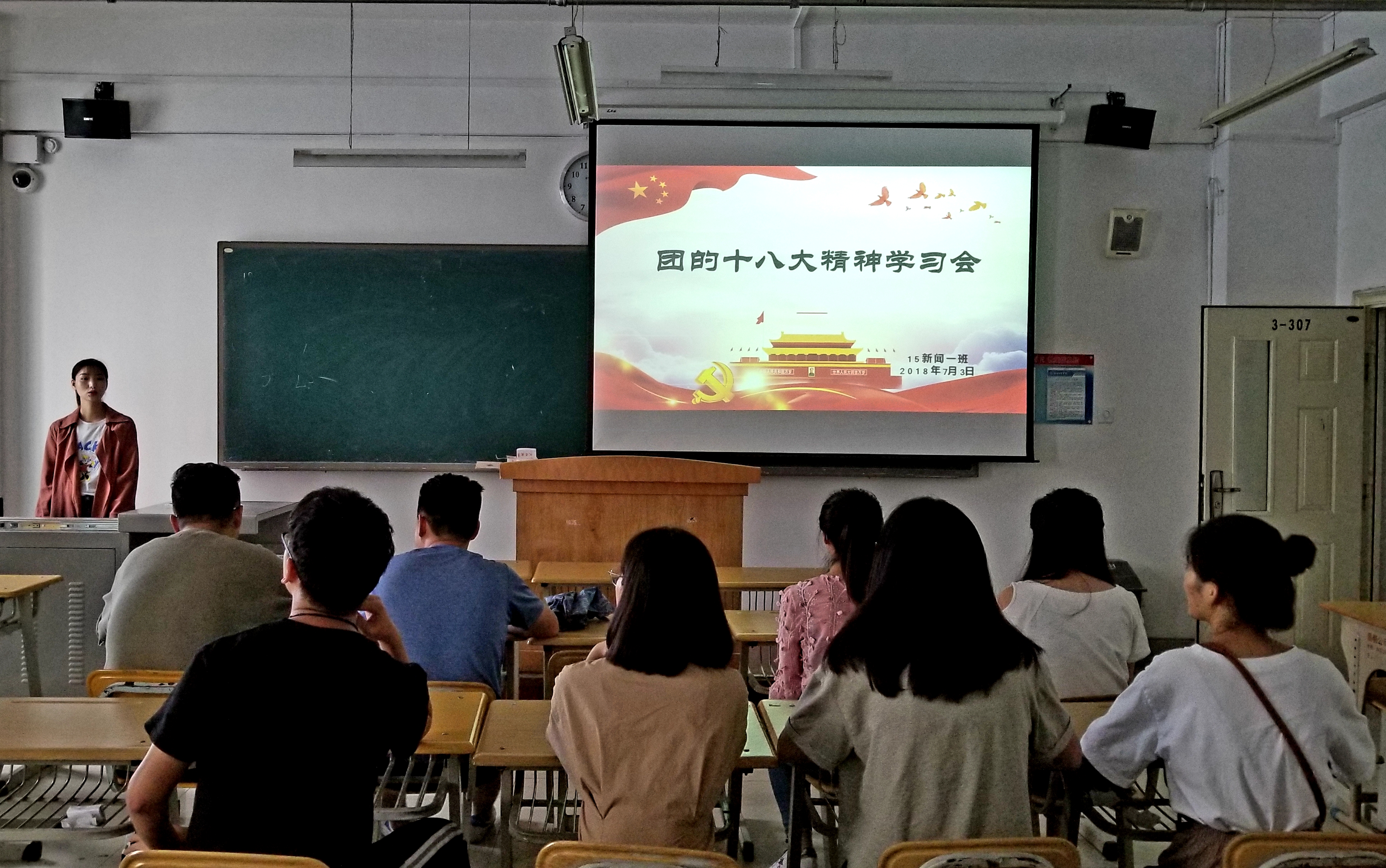 2018年7月3日下午,365英国上市公司2015级新闻学1班,在3-307教室举行《学习团的十九大精神》主题班会。重点学习了王沪宁同志在团的十八大开幕式上的致词及贺军科同志作的团的十七届中央委员会的报告。