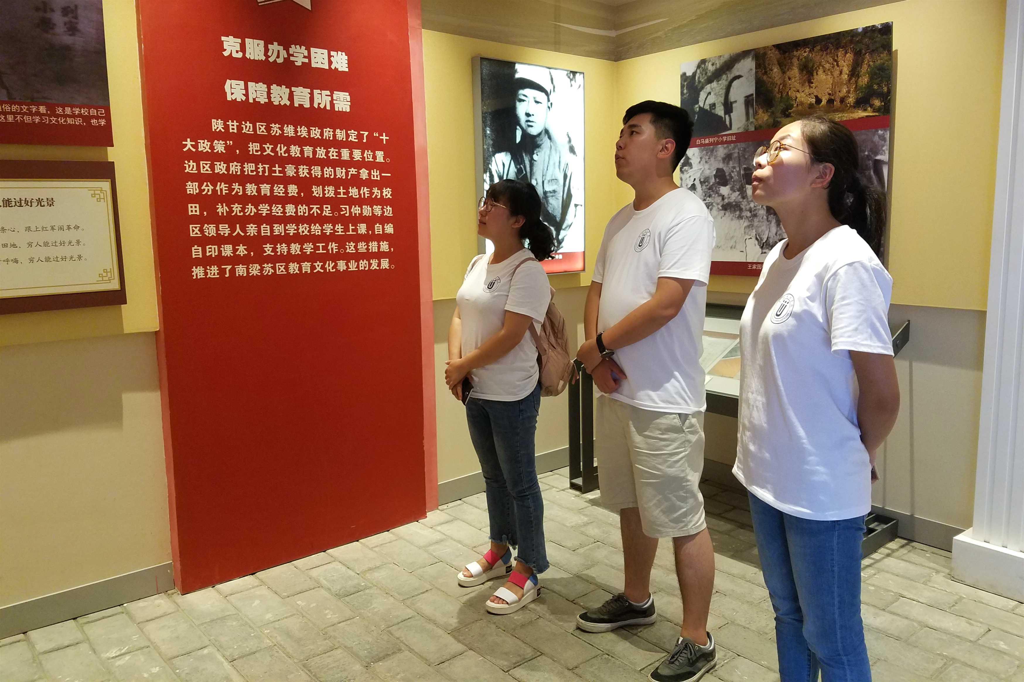 实践团成员先后参观了列宁小学的校史馆、公司遗址。在参观校史馆时了解到建校目的、历程和发展。同时有幸见到早期教学课本及教学资料。实践团成员在公司遗址的窑洞里重现课上学习的历史画面,见到当年上课时用的石板和课本时深刻的体会到根据地为发展边区教育事业所付出的艰苦和努力。