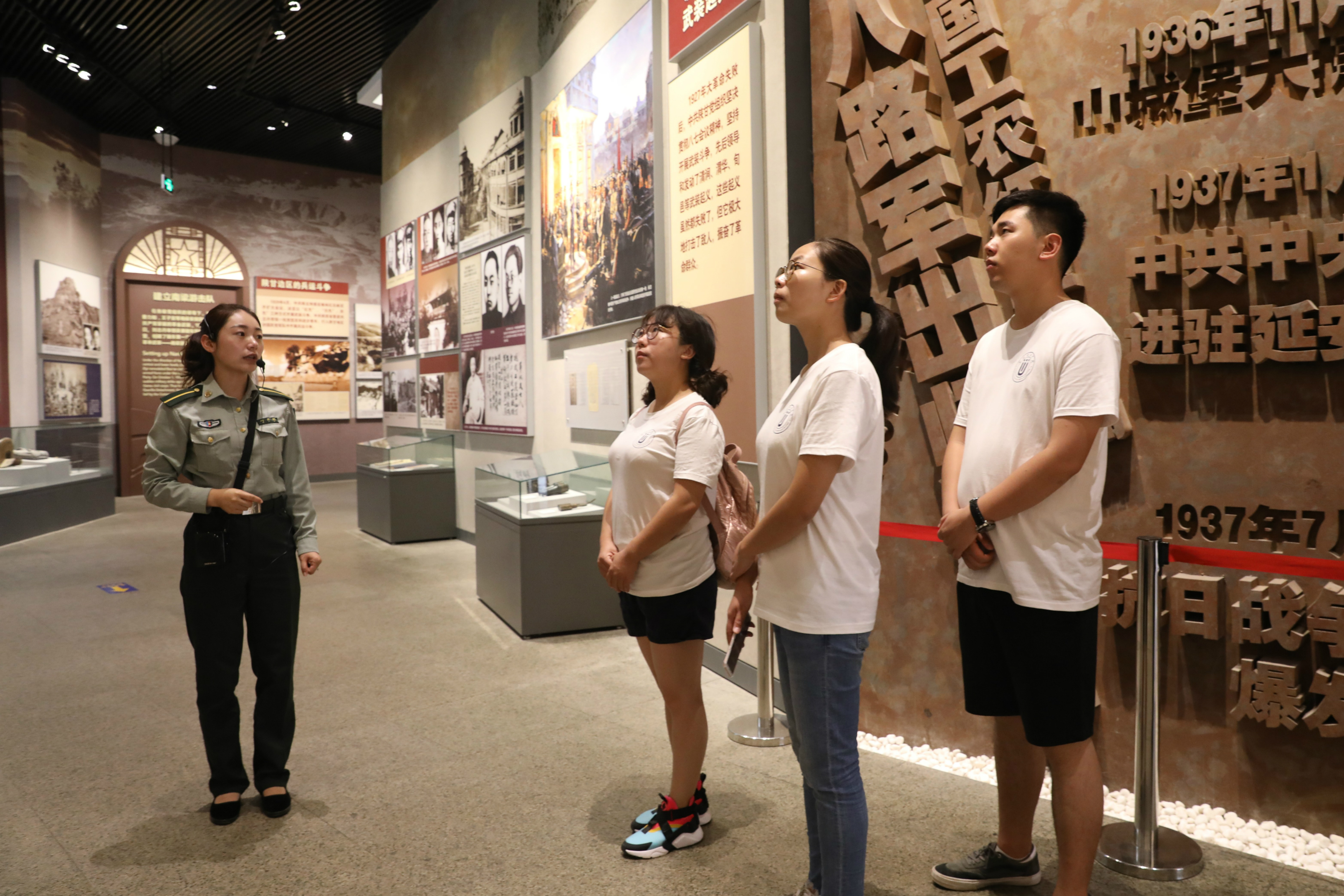 接着,实践团来到南梁革命纪念馆。以南梁为中心的陕甘边革命根据地是第二次国内革命后期我党“硕果仅存”的一块革命根据地,为长征中的党中央和中央红军提供了落脚点,为全国革命胜利作出了卓越贡献。一入纪念馆,映入眼帘的序厅展示的雕塑,象征了党中央来了,毛主席来了,中央红军来了,红日照亮了陕甘高原。纪念馆通过“创建陕甘边根据地”、“巩固和发展革命根据地”、“红军长征落脚点,八路军抗日出发点”、“南梁精神光耀千秋”四个部分及刘志丹、谢子长、习仲勋三人专题展厅向世人展示革命历史,诠释“南梁精神”。