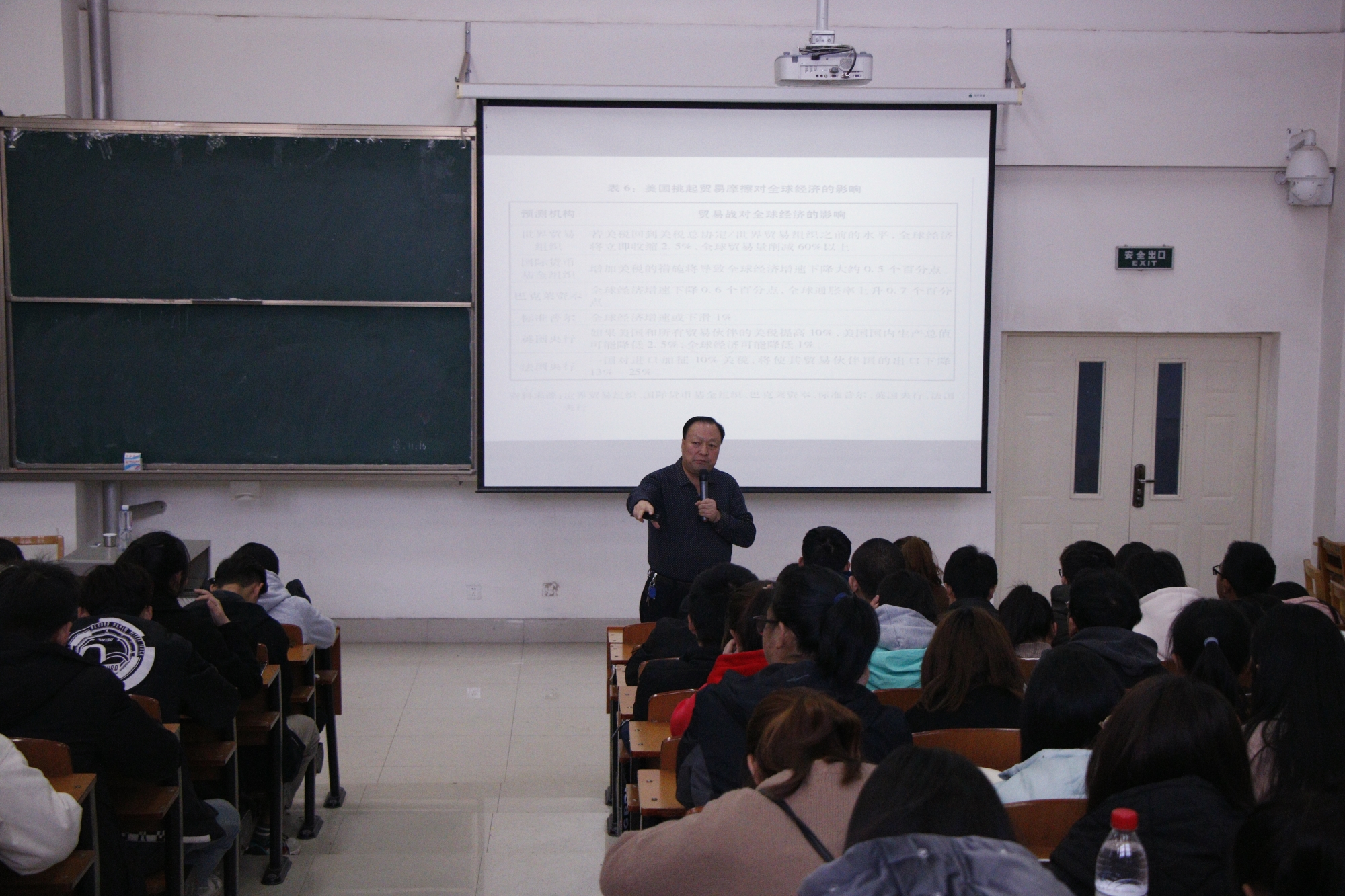 17日,王教授首先详细地讲解了什么是中美贸易摩擦,接着就美方发动中美贸易摩擦的原因、中国对待贸易摩擦的态度和从世界变局大国博弈中看中美贸易摩擦等方面做了详细的讲解,引发同学们对中美贸易摩擦这一问题的深度思考。最后,王教授提出“展望未来,中美两国贸易摩擦依然还是和而不同、斗而不破”的观点。18日,巩教授从中美贸易战的时代背景、原因、前世今生、坚决反对美国贸易霸凌四个方面进行了深入浅出地讲解,加深了同学们对中美贸易现状的理解和认识。