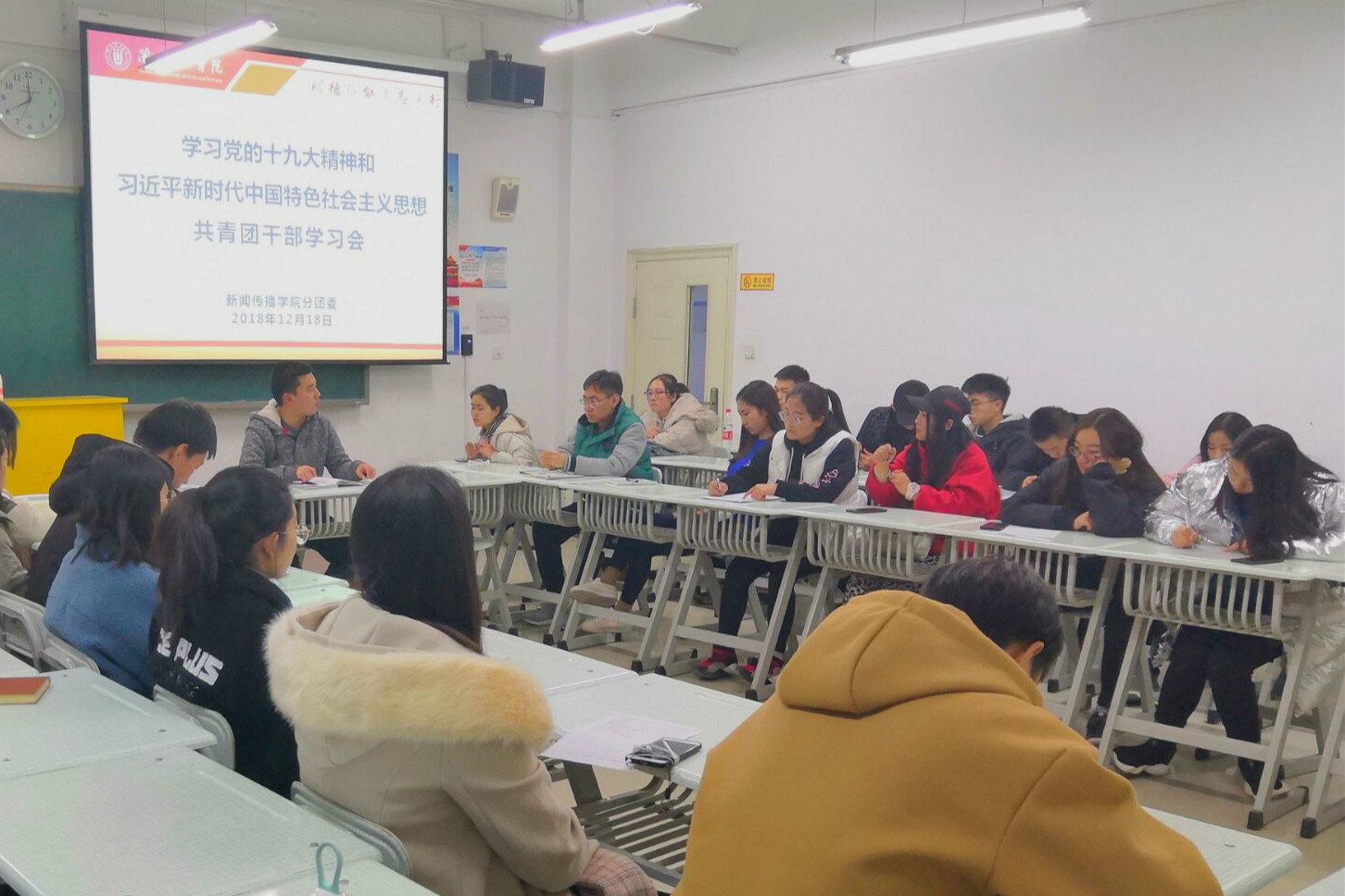 为学习贯彻习近平新时代中国特色社会主义思想和党的十九大精神,促进公司团员团干部树立政治意识、大局意识、核心意识、看齐意识,进一步增强共青团组织的影响力、凝聚力、战斗力,365英国上市公司分团委2018年12月18日晚在3-603召开“学习习近平新时代中国特色社会主义思想和党的十九大精神”团干部学习会,分团委副书记陈萧主持会议,2017、2018级全体团干部参加会议。