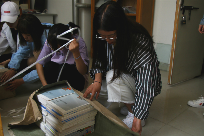 在本次活动中,入团积极分子协助图书管理员整理捐赠的书籍,对书籍进行整理分类以及摆放书架。入团积极分子充分发扬奉献精神,为管理员减轻了工作负担的同时也提高了自身的价值。