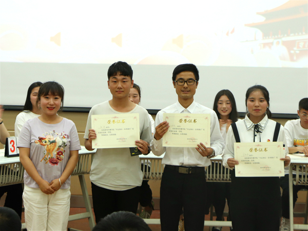 此次党史知识竞赛分为必答题、抢答题两个环节,以现场作答的形式进行,题目涵盖中国共产党历史、《中国共产党章程》及习近平新时代中国特色社会主义思想。个人必答题环节促进了参赛选手了解新时期党和国家所面临的国内外形势,增强青年员工的“四个”意识和党性修养。第二轮抢答题环节,不但考验参赛队伍的知识储备,同时也对参赛选手的快速反应、快速抢答提出了较高的要求。经过激烈角逐,2018级新闻学一班团支部荣获本次比赛一等奖,员工第二党支部、2018级数字出版班团支部荣获二等奖,2018级新闻学一班团支部、2017级数字出版班团支部、2017级广播电视学班团支部荣获三等奖。