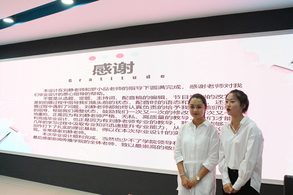 答辩会上,来自2016级播音主持班的员工向在座教师展示了广播单本剧《蓝色的敦煌》及纪录片《美食大侦探》,并介绍了本次毕业设计作品的创作背景、设计思路、指导记录、创作历程、节目亮点、目的和意义以及对作品的反思。
