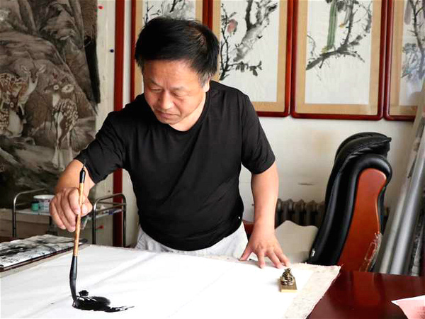 19日下午,实践团一行对从画三十余年的姬文新老师进行了专访。他重点向实践团成员讲解了绘画的风格特点以及种类分别。“绘画作为传统工艺,思想情感的注入对于作品语境的表达有及其重要的作用,用笔速度、快慢节奏、色彩搭配等绘画素养的不断提升也是进一步提高绘画技术的要求所在。”姬老师谈到。在采访中了解到,姬老师也一直致力于绘画公益事业,在积极参加文化三下乡活动的同时曾花费五年时间为北京奥运会献上了长达145米、宽至1米的牡丹长卷《千古一春》,据了解,作品上画有2008朵牡丹、87只和平鸽以及山石寿袋鸟等其他被赋予寓意特色的象征性画物。