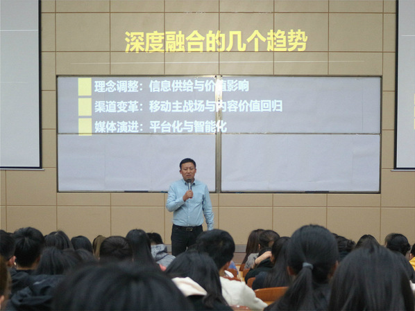 通过举办此次讲座,使全体同学对深度融合与移动传播这一概念有了更深层次的了解,同时也促进广大同学对十八大以来党中央对推进传统媒体和新兴媒体融合发展作出的重要部署有了更深层次的理解。
