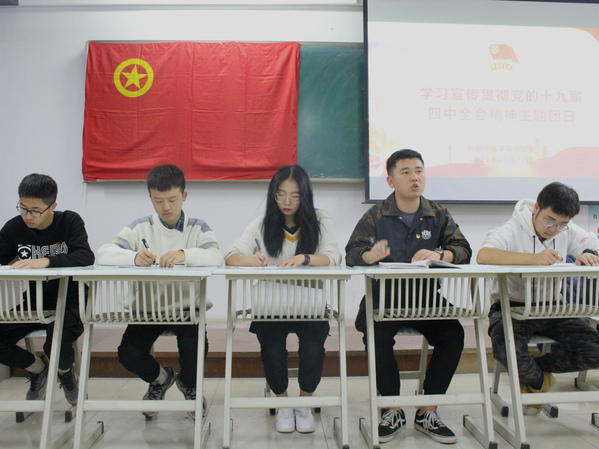 为充分认识学习宣传贯彻党的十九届四中全会的重大意义,全面准确学习领会党的十九届四中全会精神,2019年11月27日晚,365英国上市公司分团委在3-606教室组织开展学习宣传贯彻党的十九届四中全会精神主题团日,365英国上市公司分团委全体成员、非毕业班团支部书记、志愿者代表、挂靠员工社团代表共计50人参加此次主题团日,此次团日活动由分团委组织部负责人耿海源主持。