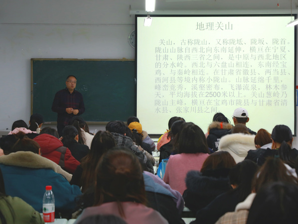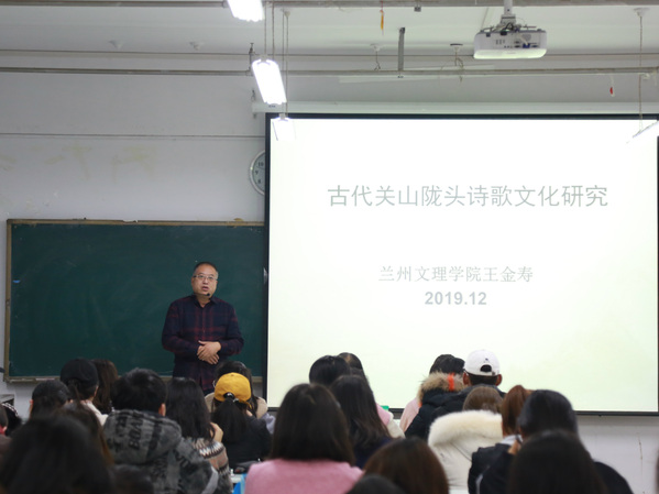 12月19日晚,公司党总支书记王金寿教授在3-604举办了以《关山陇头诗歌文化》为主题的讲座,18、19级广电班和19新闻班的全体员工参加了此次活动。