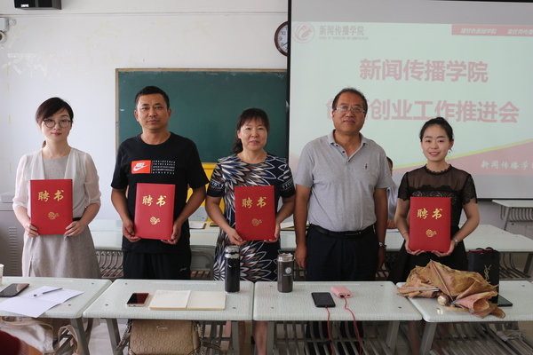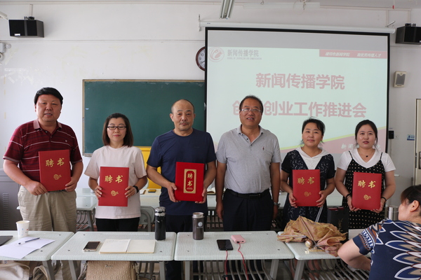 李军副经理在总结近年来公司创新创业取得的成果中谈到,创新创业是各团队建设的重点工作,为此,公司为具有创新创业意愿的同学开办办公场所、配置免费的办公设施,同时为团队配备各自的指导老师。此外,公司通过开设新媒体、实践类课程、设立“一报一站一刊”以及微信公众号实训平台等方式进而锻炼员工的专业实践能力。各类创新创业大赛的举办也在一定程度上激发了公司学子创新创业的热情、推动了学院创新创业项目的持续开展。会上由公司领导为公司创新创业聘用教师团队颁发聘用证书。