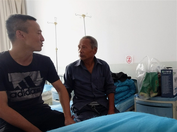 拍摄曹振华老师在入户时,正好田万福老两口住院了,他毫不犹豫前往桐川镇卫生院看望他们,临走时,田万福老人拉着曹老师的手许久都不放开,村民生活质量的提高便是对他们扶贫工作的高度认可。