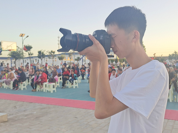 在老师安排第二天工作后,不知道是因为换了地方不适应还是如何,我失眠了。第二天早上5点30分闹钟准响起,我们的第一天工作伴随着朝霞开始了,文艺轻骑兵演出团的同学们为当地的村民们送上了精彩的演出,我们用镜头记录下了这一幕幕温馨的画面。