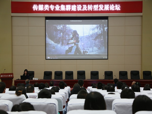 论坛开始,金俊女士做了题为《数字媒体专业在游戏动画行业中的就业前景和发展》的报告,介绍了丝路文化系列3D游戏《紫塞秋风》和甘肃嘉元数字科技有限公司的发展状况。她指出,应当把文化搬进游戏,把游戏写进文化,将民族文化与新媒体相融合。
