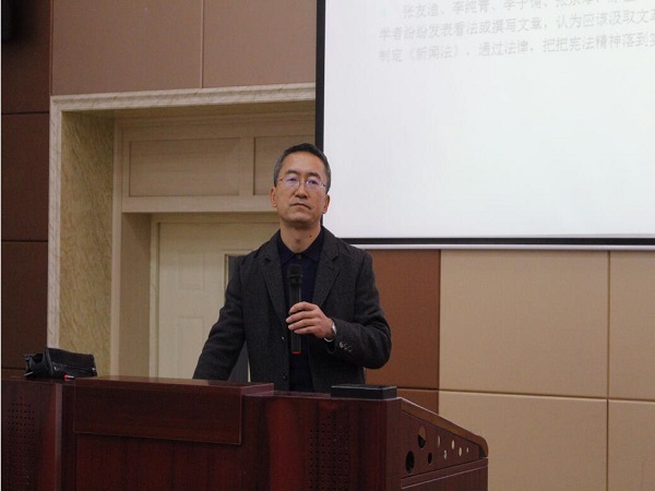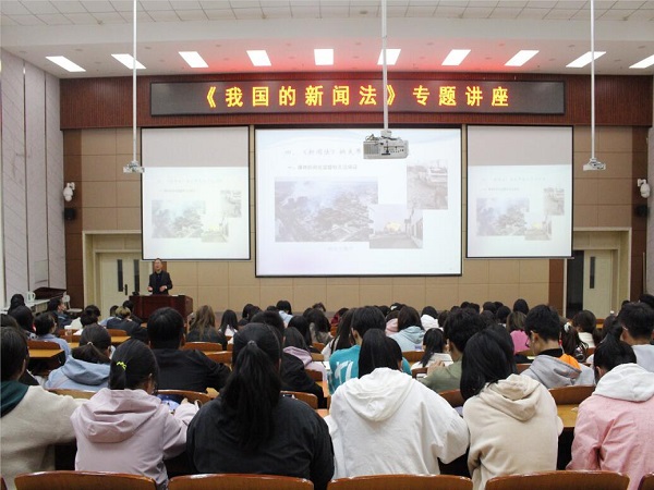 10月22日下午,甘肃省广播电视总台高级编辑乔千老师在5-205主讲题为《我国的<新闻法>》专题讲座,2018级新闻学(专升本)班、2019级新闻学班及2020级全体员工参加了此次讲座。