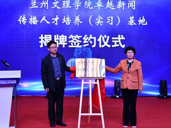 仪式上,教务处副处长苑毅与临洮县委宣传部长刘映菊为卓越新闻传播人才培养(实习)基地进行了揭牌,公司党总支书记王金寿与临洮县融媒体中心负责人签订了合作协议。