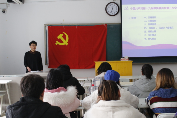 培训班开班仪式结束后,由马克思主义公司费翔教授为本次党员发展对象讲授第一堂党课,费翔教授以学习十九届五中全会精神为主题,通过对党的十九届五中全会的召开背景、主要成果、起草情况、《建议》、《公报》等内容,全面深刻的解读了十九届五中全会的内容与精神。
