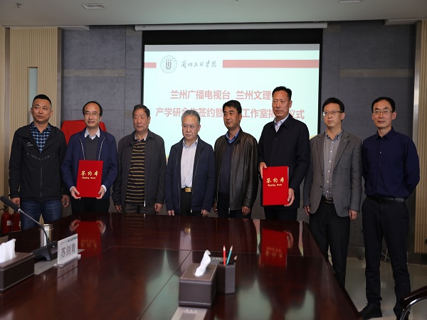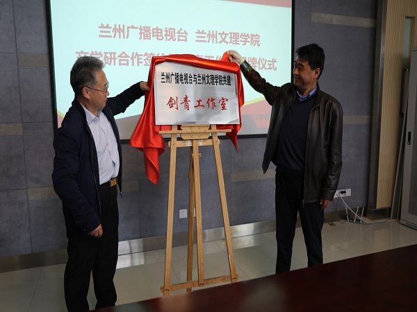 随后,公司党总支书记王全胜与兰州广播电视台党委副书记裴烈勋签订了产学研合作协议。由张焱副董事长和童贤方台长共同为“剑青工作室”揭牌。