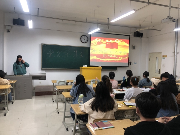 2021年4月19日,2018级广播电视学班在教学楼3-606开展“新民主主义革命时期”为主题的党史学习会。会上,团支部书记聂霞霞首先带领大家观看视频学习了新民主主义革命精神和历史进程。随后,她给同学们介绍了新民主主义革命时期,统一战线的历史发展经历的四个阶段。学习活动结束后,大家踊跃发言,分享学习体会。最后,杨晓燕老师作总结发言。“今年,我们将迎来中国共产党成立100周年,一百年风雨兼程,一世纪沧桑巨变, 回首展望,我们路上风尘仆仆、筚路蓝缕,创造了世界一个又一个的奇迹。对我们老员工来说,百年党史是奋斗路上“的教科书”,唯有认认真真学习党的伟大革命史,了解党的发展历程,汲取党史中的“智慧”,才能继承好党和国家交给我们的职责使命。”