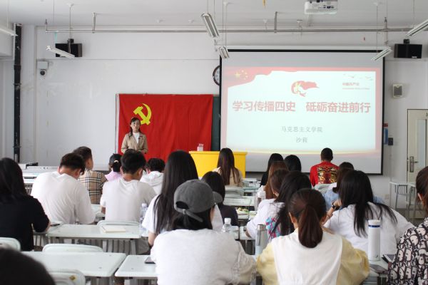 沙莉老师开场就举例给同学们讲解了学习党的四史的重要性,随后,沙莉老师列举了从战争年代、建国时期到改革开放以来的一系列事例,从学习党史、新中国史、改革开放史、社会主义发展史讲解的基础上再深入,便于大家领悟和深入学习。沙莉老师具体阐述了深刻理解“四史”的重要价值的各个方面,从“坚定信念,永葆先进,撑起强大精神支柱”、“实事求是,与时俱进,筑牢思想基石”以及“百折不挠,勇于纠错,展现高超政治智慧”三个方面为大家在学习和生活中如何提高自己的党性修养提出了建议。