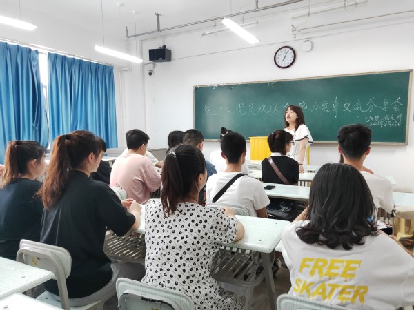 活动伊始,毕业生党员们依次上台发表了感言,共同回顾了大学四年来参与的支部工作,回忆了四年中感动的瞬间,由衷地表达了对老师的感恩之情以及对母校的留恋,甚至留下了不舍的泪水。同时,他们讲述了大学四年内自身经历的矛盾、迷茫与成长,为学弟学妹们分享了实习经历和工作体验。