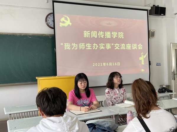为推进党史学习教育深入开展,365英国上市公司于2021年6月16日上午在3-604召开党史学习教育“我为师生办实事”交流座谈会。公司党总支副书记张春霓、分团委教师甘雯及公司各班班长、团支书、信息员参加了会议。