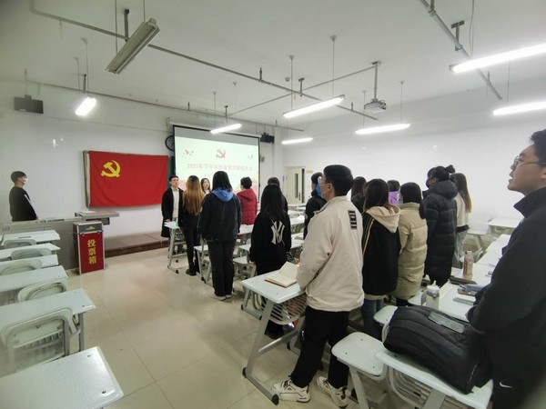 本次大会主要是讨论是否能够接收党员发展对象石鹏太等14名同志为预备党员的问题,会议严格按照《中国共产党发展党员工作细则》开展。首先,石鹏太等14名同志汇报个人的思想、生活、工作情况,入党介绍人介绍党员发展对象有关情况并发表意见;之后,与会党员就是否能够接收14名发展对象为预备党员进行充分讨论后进行无记名投票表决,会议表决通过接收石鹏太、刘婷婷、张泽、杨佐鹏、李佳丽、焦春艳、侯国庆、刘迎惠、李文仙、张源娇、林子敬、李宜鸿、赵邓霞、常凌筱14名同志为中共预备党员。最后,由党支部宣传委员刘章强同志领誓,新一批预备党员在鲜红的党旗下进行入党宣誓,老党员为新一批预备党员佩戴党员徽章。
