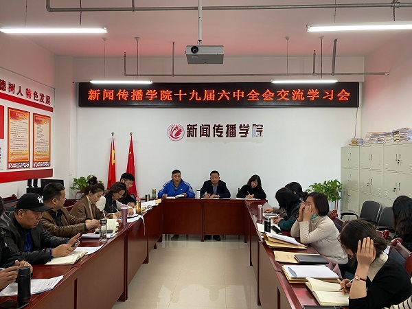 与会人员围绕学习内容结合自身实际工作进行了研讨。教工第一党支部书记弥建立以“马克思主义新闻观中国化的当代探索”为主题,从中国新旧媒体之变、习近平对马克思主义新闻观中国化的重大发展、马克思主义新闻观中国化当代探索创新性和下一步打算四个方面进行了阐述。教工第二党支部书记刘洪艳围绕深刻认识“十个坚持”进行了交流,她表示在现代化强国的建设过程中,一定要坚持党的领导,坚持把党的十九届六中全会精神融入到工作的全过程。要坚定理想信念,用马克思主义新闻观武装头脑,立志做好中华文化的传播者,为“讲好中国故事,传播好中国声音”做出贡献。教工第三党支部书记梁宝毓表示,接下来要紧紧围绕学习贯彻全会精神精心备课,当好党的理论阐释者、党的声音传播者、党的政策贯彻者,推动六中全会精神深入课堂,引导青年员工以学习《决议》为大纲,坚定感党恩、听党话、跟党走的信心决心,更加自觉地做习近平新时代中国特色社会主义思想的坚定信仰者和忠实实践者。同时,要将学习成果落实到为群众办实事的行动中去,从一点一滴做起,用自己的行动影响身边的人。员工第二党支部书记杨玮指出,作为教师,必须要认真学习领会十九届六中全会精神,切实提高做好新时代老员工思想政治工作的本领,用好十九届六中全会这本思政教材,把百年光荣党史融入到教学活动之中。作为支部书记要把学习宣传贯彻十九届六中全会精神作为今后一个时期的工作重点,深入学习理论,加强自我修炼;传承红色基因,竭诚为生服务;勇于担当作为,树立远大抱负。