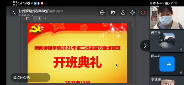 11月15日,培训班由于疫情影响在线上举行了开班典礼。公司党总支书记王全胜书记作了开班致辞。开班典礼由甘雯同志主持,2021年下半年全体发展对象参加典礼。