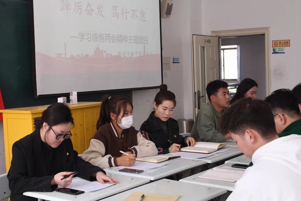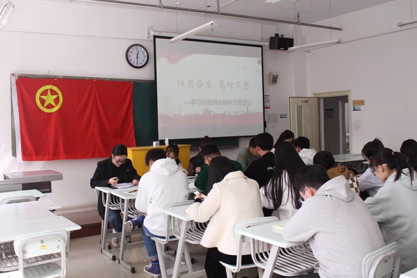活动开始由分团委蒋洪昊同学领学两会精神,并对两会精神作了相关阐述。接着,聂霞霞、魏巍、林子敬、鲁玉同学分别作学习两会精神的感悟发言,其中他们就习近平总书记在全国两会期间发表的重要讲话等深刻表明自己相关的看法及其观点,对两会精神的主旨也作了补充领会。最后,后玉良同学对学习两会精神做了总结发言,他表示,作为新时期的老员工,为所处的盛世感到骄傲和自豪,我们应该竭尽所能,把专业知识用于日常工作和社会实践中,牢记自己的职责和使命。