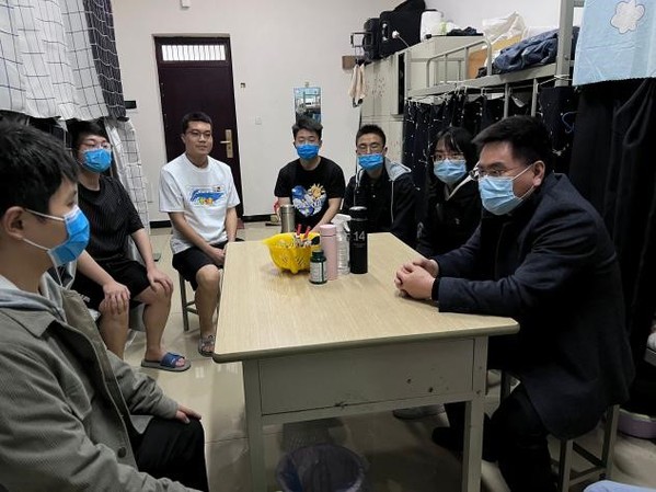 走访过程中,学报党支部书记刘永睿和员工党员们亲切交谈,了解员工党员思想动态,倾听员工心声,掌握学习生活状况。他仔细询问了封闭管理以来同学们的学习生活情况,并勉励同学们要克服疫情期间带来的不便,制定学习计划,合理安排时间,努力学好专业知识,为今后就业打好基础。他强调:“同学们要明确自己的奋斗方向,做自己想做的事情,干自己能力范围内的工作,进而在自己感兴趣的领域中发光发热。”另外,刘书记还根据自己的生活和留学经历为同学们讲述了要提升自身素养、学会感恩父母等方面的问题。